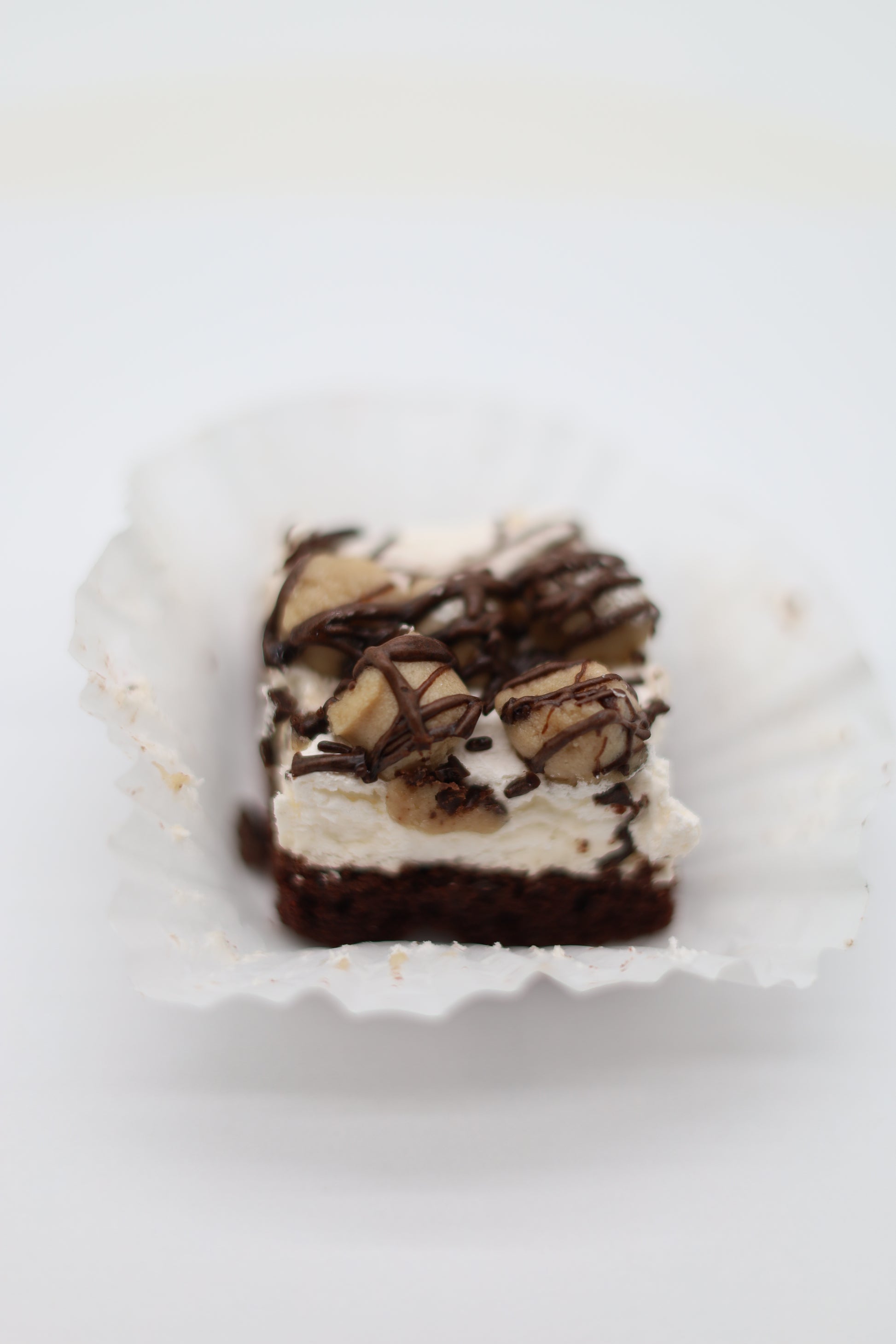 Chocolate cake layered with whipped cream and layered with chocolate chip cookie dough.