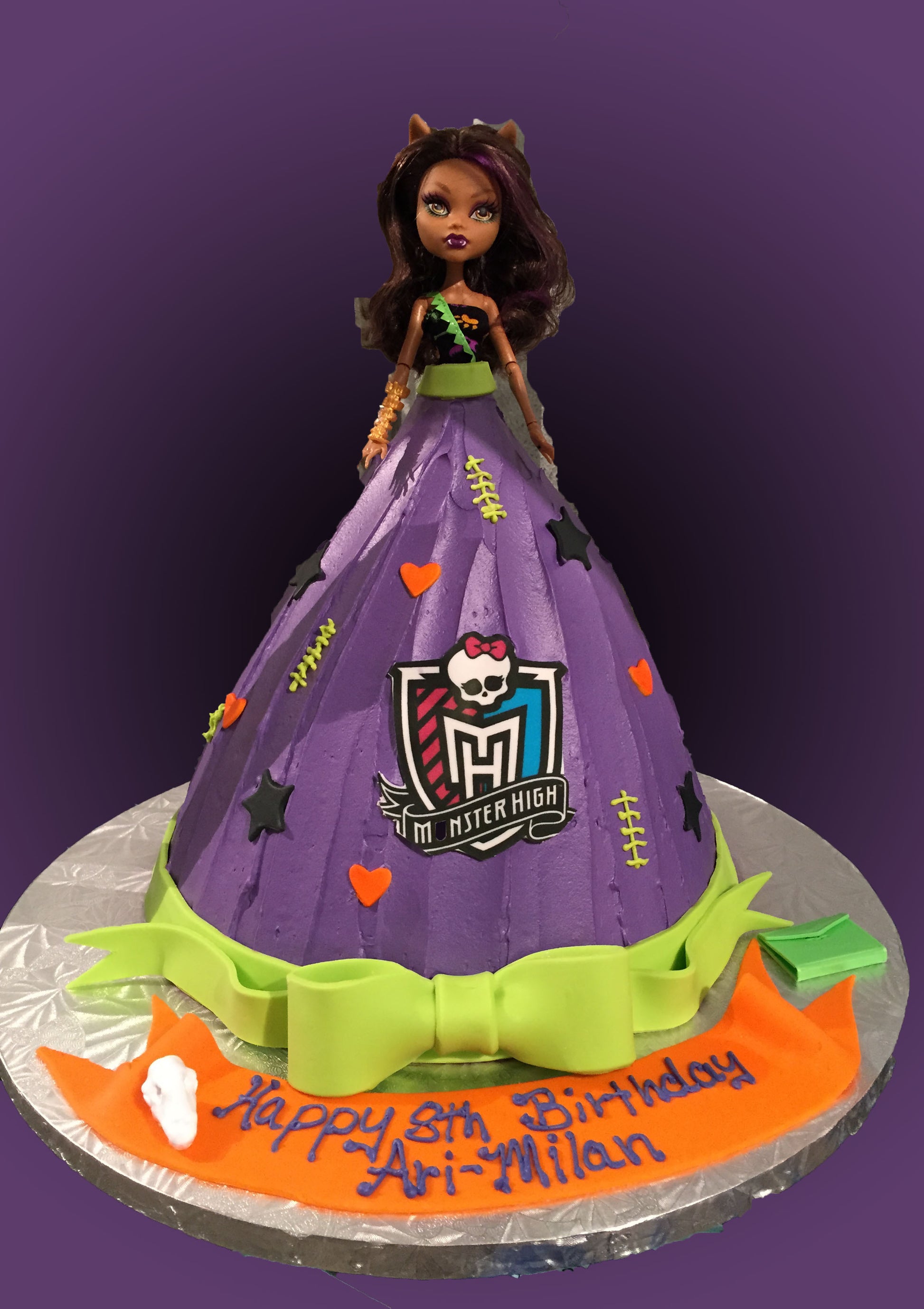 Buttercream frosting Barbie doll cake with "Monster High" theme