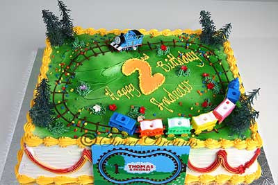 Buttercream frosting cake with Thomas & Friends Decorations.