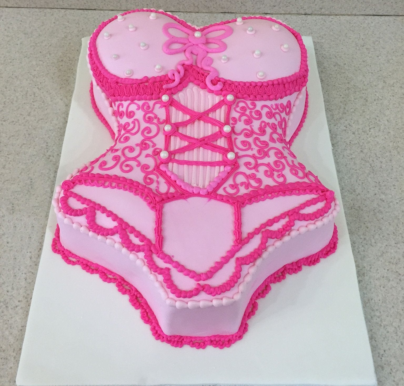 Corset silhoutte covered with fondant and finished with buttercream decor.
